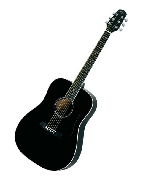 Акустическая гитара с корпусом "Dreadnought", покрытым прозрачным глянцевым лаком, стальными струнами, верхней декой из красного дерева, нижней декой и обечайкой из древесины нато и грифом из красного дерева с палисандровой накладкой и 2-сторонним стержнем. В комплекте чехол.