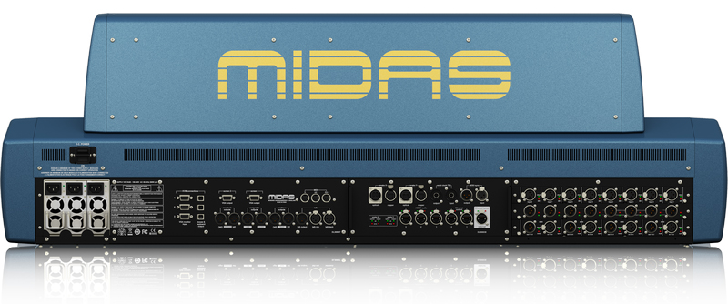 Новая 168-и канальная цифровая консоль Midas PRO X является на сегодняшний день вершиной в модельном ряду компании, использует хорошо зарекомендовавшую себя по эргономике консоль управления с 29 моторизованными фейдерами. В ней применены два монитора повышенной яркости, которые обеспечивают комфортную видимость даже при солнечном свете. Имеется расширенная система регуляторов параметров и индикаторов уровней, тесно интегрированная с изображением на дисплеях. Консоль может быть настроена на две зоны управления A и B для одновременной работы двух звукорежиссёров с двумя независимыми мониторными выходами.