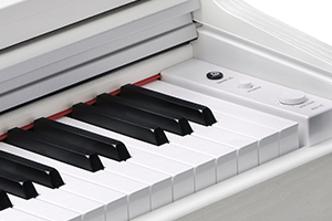 Корпус в стиле спинет доступен с двумя вариантами покрытия – имитации палисандра и белом, имеет двойную стереосистему 25 Вт, встроенный пюпитр и выдвижную крышку клавиатуры.