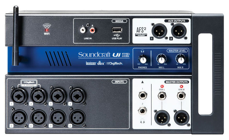 Ui12 имеет четыре комбо-входа XLR (микрофонный/линейный), четыре микрофоных XLR-входа, два канала инструментальных Hi-Z входов, а также линейный стереовход RCA. Ui12 оснащена встроенным 2-канальным USB медиаплеером, двумя симметричными XLR Aux выходами, двумя ¼” выходами для наушников с регуляторами уровня, симметричными основными стерео XLR и 1/4 дюймовым выходами. Двухканальное USB воспроизведение аудио поддерживает MP3, WAV и AIFF форматы.