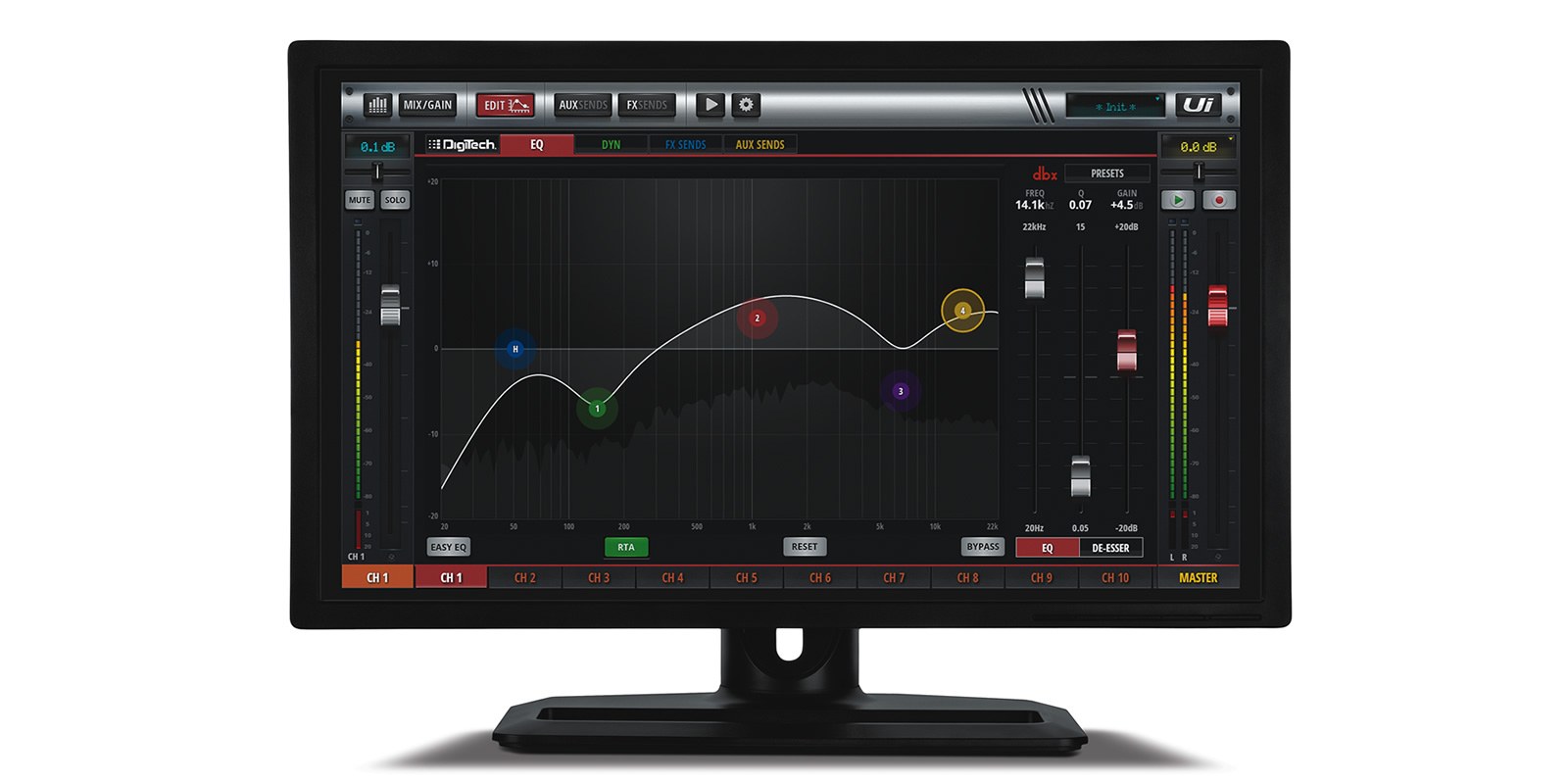 Кроме того, Ui12 и Ui16 оборудованы Harman’овскими встроенными системами обработки сигнала dbx, включая dbx AFS2, DigiTech, Lexicon, DigiTech Amp Modeling и многих других. Обе модели оснащены полностью съёмными и дистанционно управляемыми микрофонными предусилителями, имеют фантомное питание, 4-полосный параметрический эквалайзер, HPF (фильтр высоких частот), компрессор, деэссер и систему шумоподавления (Noise Gate) на входных каналах.