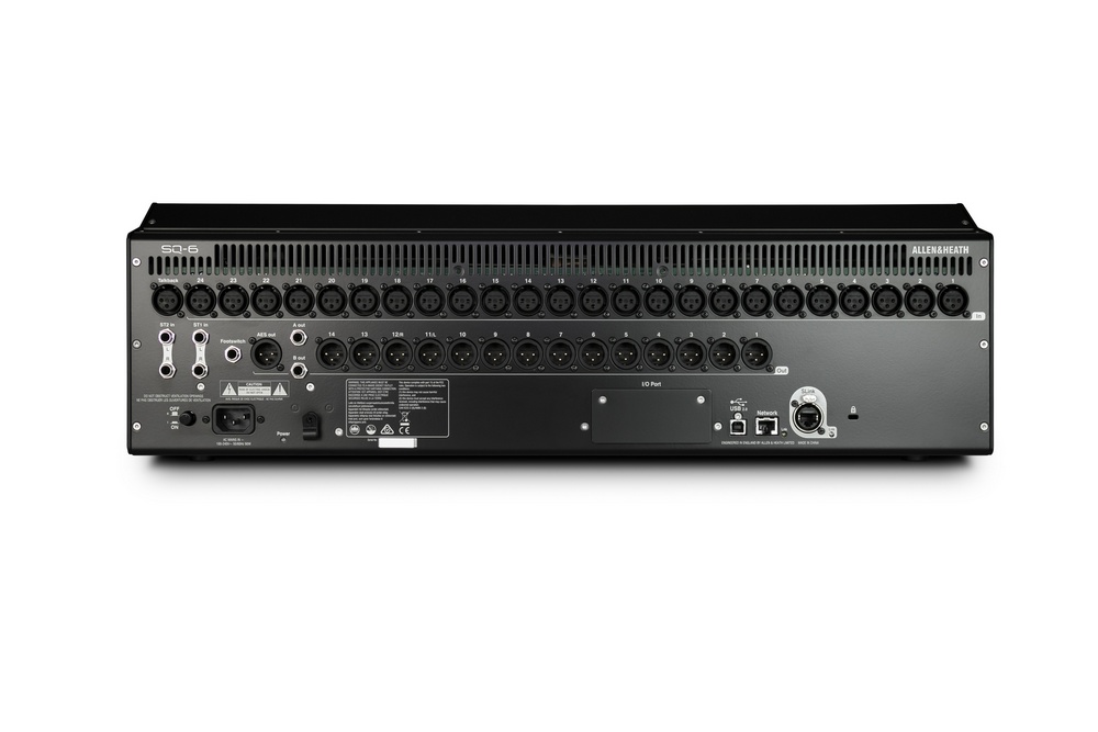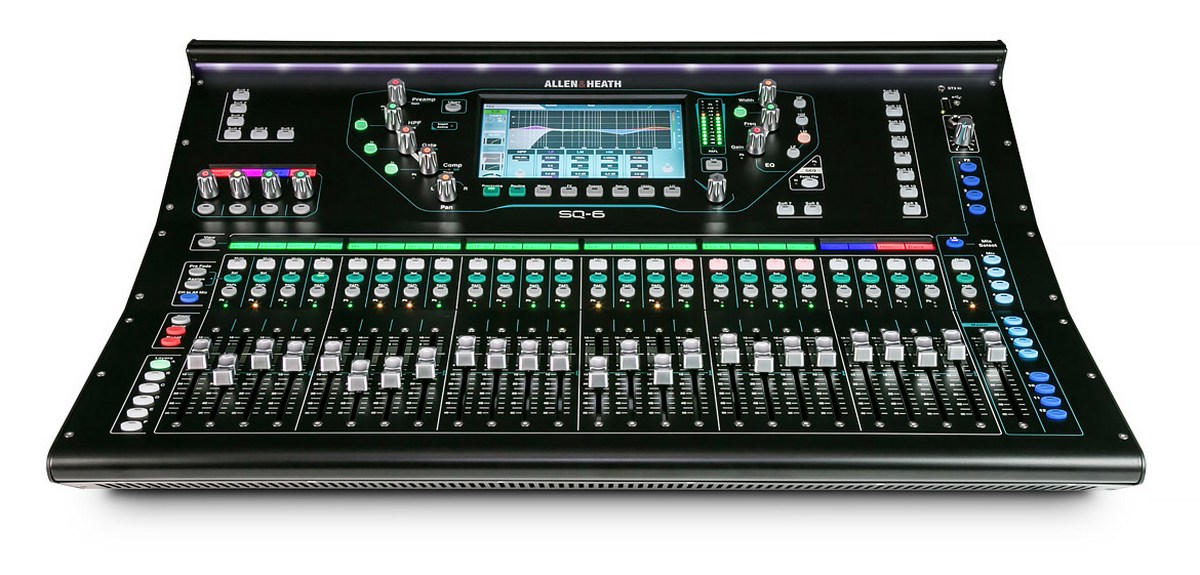 Микшерные консоли SQ-5 и SQ-6 основаны на революционном процессоре Allen&Heath XCVI 96 кГц FPGA, обеспечивающем лидирующее в своем классе аудио высокого разрешения с задержкой сигнала не более 0,7 мс. SQ-5 имеет 16 встроенных предусилителей и 17 фейдеров и вмещается в стандартный 19-дюймовый рэк, в то время как SQ-6 снабжен 24 предусилителями и 25 фейдерами. Обе консоли могут обработать 48 входов благодаря большому разнообразию рэков расширения, а также обладают слотом для дополнительной сетевой карты Dante, MADI, Waves и других форматов, расширяющей возможности системного интегрирования, разделения FoH / мониторы и многоканальной записи.