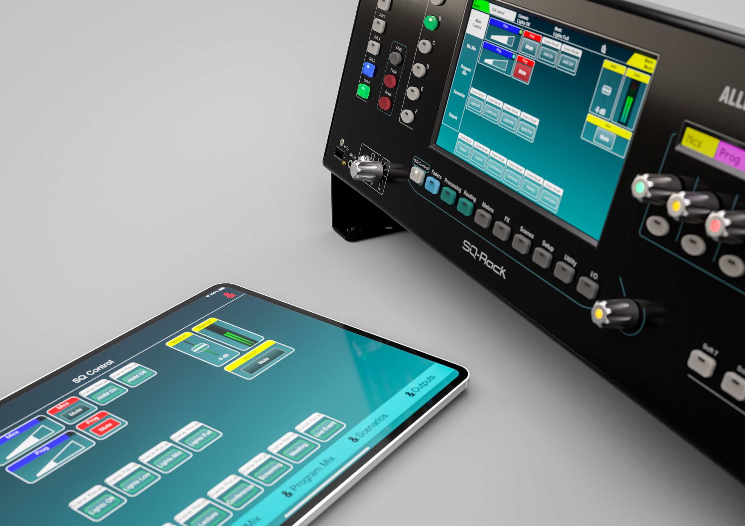 Несмотря на отсутствие физических фейдеров, SQ-Rack не уступает по контролю: 7” сенсорный экран, 8 назначаемых SoftKeys и 4 вращающихся энкодера с LCD-дисплеями дают мгновенный доступ к важнейшим параметрам, а мобильные приложения SQ MixPad и SQ Control позволяют управлять микшером удалённо с любого устройства в зале или в режиме подготовки «офлайн».