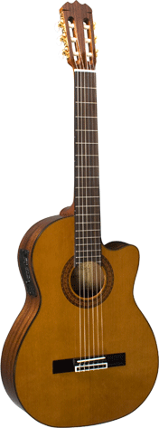 Акустическая классическая гитара с вырезом и с предусилителем System 600MKII. Нижняя дека - красное дерево. Верхняя дека - цельный кедр.
