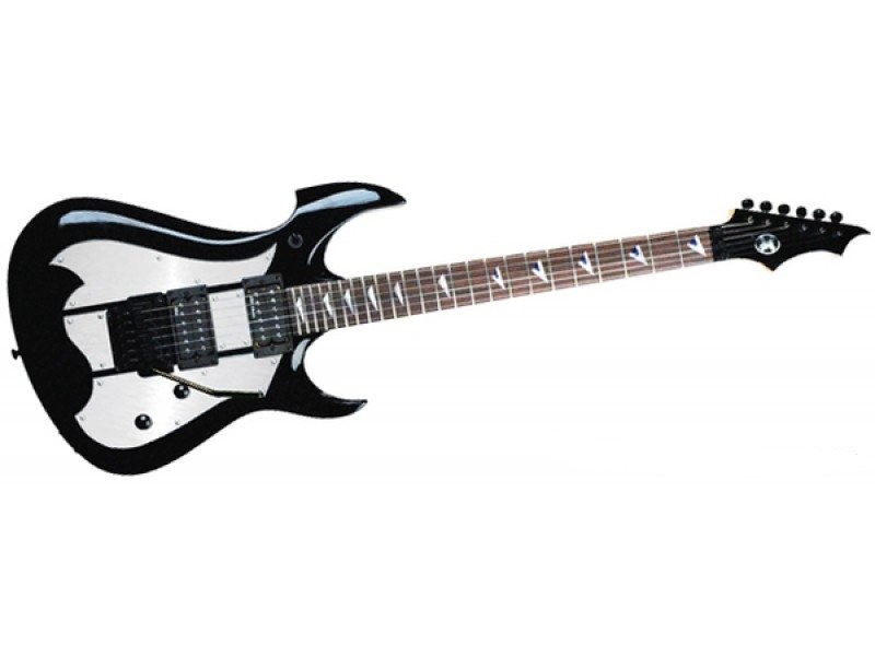 Электрогитара серии «Mayhem», отличается оригинальным корпусом с заоваленными скосами, который изготовлен из ольховой древесины. Имеет специальный ультратонкий кленовый гриф со вставками из дерева бубинга. Накладка палисандровая, с 2 звукоснимателями Alnico, 1 регулятором громкости и 1 регулятором тембра. Бридж плавающий, тремоло. Электрогитара выполнена в черном цвете.