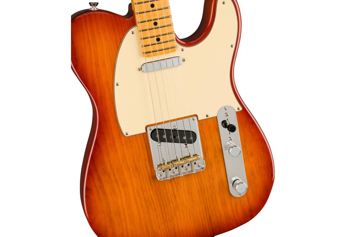 FENDER AMERICAN PRO II TELECASTER MN SIENNA SUNBURST обеспечивает мгновенную "связь" и универсальность звучания, которые вы сразу почувствуете и услышите, с широким спектром улучшений, которые составляют не что иное, как новый стандарт для профессиональных инструментов.