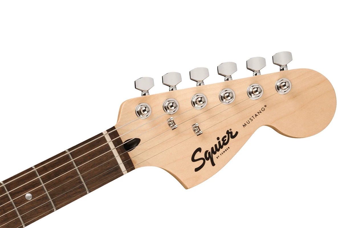 Squier Sonic Mustang LRL Bpg Grafity Yellow – электрогитара 6 струн, серии Sonic, форма корпуса – Mustang, материал корпуса – тополь, гриф – клен с накладкой лаурель, профиль "C", радиус накладки – 9.5", лады 22 Narrow Tall, мензура – 24", звукосниматели (S-S) – Ceramic Single Coils, бридж – 6-Saddle Top-Load Hardtail, цвет – желтый.