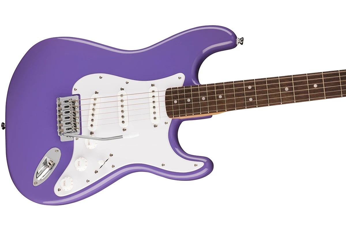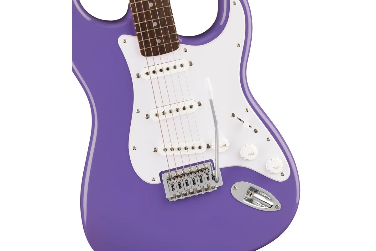 Основные особенности электрогитары Squier by Fender Sonic Stratocaster LRL Ultraviolet: Тонкий и легкий корпус из тополя; "С"-образный гриф из клена; Три сингловых звукоснимателя Ceramic Single-Coil; 6-седельный тремоло-бридж; Хромированная фурнитура; Цвет – фиолетовый.