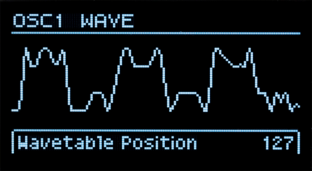 - OSC 1 (Wavetable): 63 волны; модуляции — позиция волны, фазовая модуляция (P-MOD), модуляция формы (S-MOD)