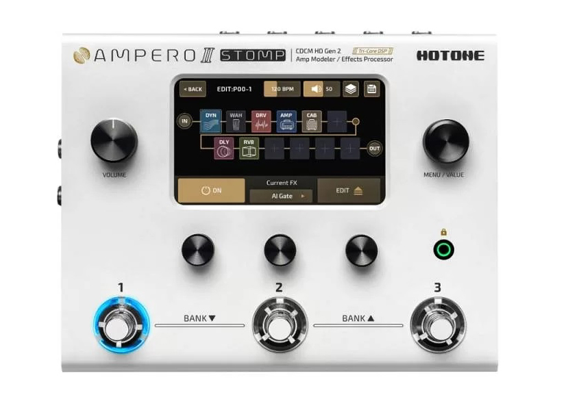HOTONE AUDIO AMPERO II STOMP внедряет новую трехъядерную цифровую платформу и независимый АЦ/ЦА конвертер серии ESS Sabre в сочетании с усовершенствованной технологией моделирования CDCM HD + F.I.R.E, что способствует более динамичным и ярким в музыкальном плане тонам.