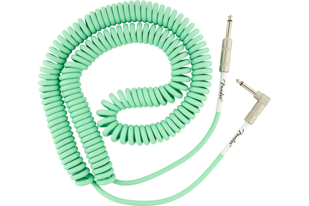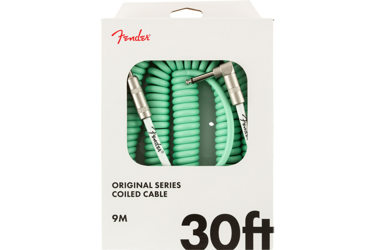Fender Cable Original Series 30' Coil Surf Green – это витой инструментальный кабель с прямым и угловым джеками длиной в 9 м. Кабель имеет наружную оболочку диаметром 6.5 мм, проводник с сечением 23 AWG и 90% спиральное экранирование из бескислородной меди (OFC) для понижения шумов. Оснащен никелированными коннекторами. Цвет – зеленый.