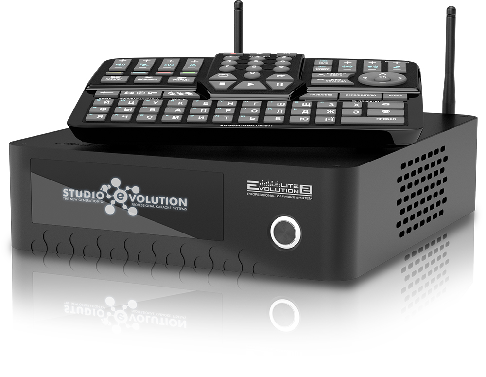 - Управление караоке-системой с пульта дистанционного управления и планшета. Наша компания разработала для вас новый удобный и интуитивно понятный пульт дистанционного управления. Также есть возможность установить на ваш планшет приложение «EvoLite2» для управления караоке-системой и использования электронного каталога.