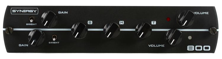 Synergy 800 оснащен двумя каналами с регуляторами усиления и громкости и переключателями "bright". Оба канала делят между собой трехполосный эквалайзер.