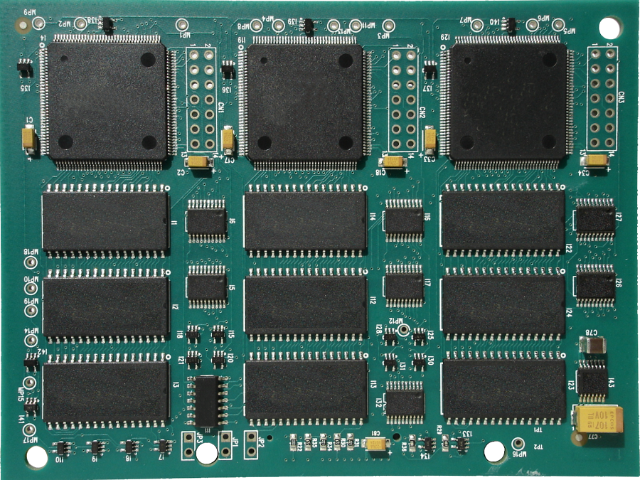 - Память: 2х512 К SRAM, макс. задержка 21.8 с.;
