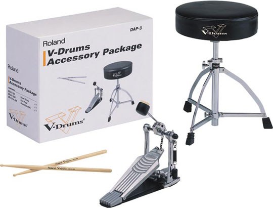 Этот набор аксессуаров для электронных барабанов предназначен для начинающих барабанщиков, позволяя им начать играть сразу после покупки V-Drums. Комплект состоит из педали большого барабана, стульчика для барабанщика и пары палочек – все с логотипом Roland и гарантией качества.