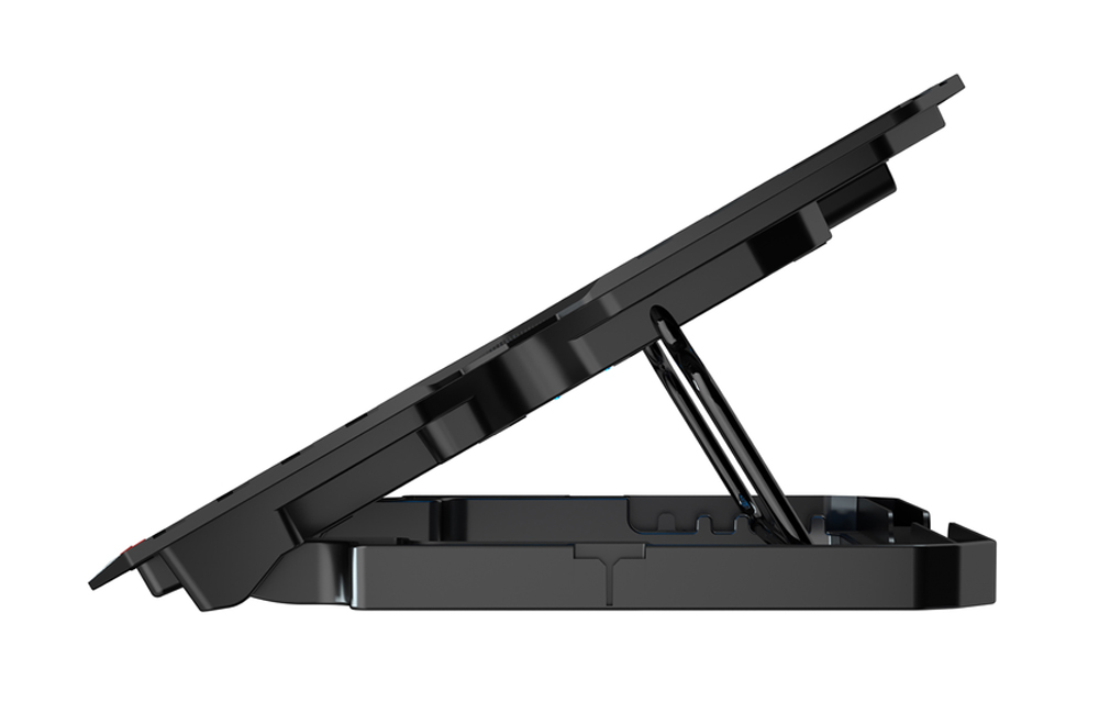 Охлаждающая подставка GamePro – это мощная система охлаждения с 5 вентиляторами, вращающимися с частотой 1000-1200 оборотов в минуту. Железная сетка + пластиковый материал основания прочный и идеальный в рассеивания тепла. Встроенные ножки обеспечивают расположение ноутбука под удобным углом, а ограничители препятствуют соскальзыванию. Подсветка делает подставку не только эффективным гаджетом, но и стильным геймерским аксессуаром.