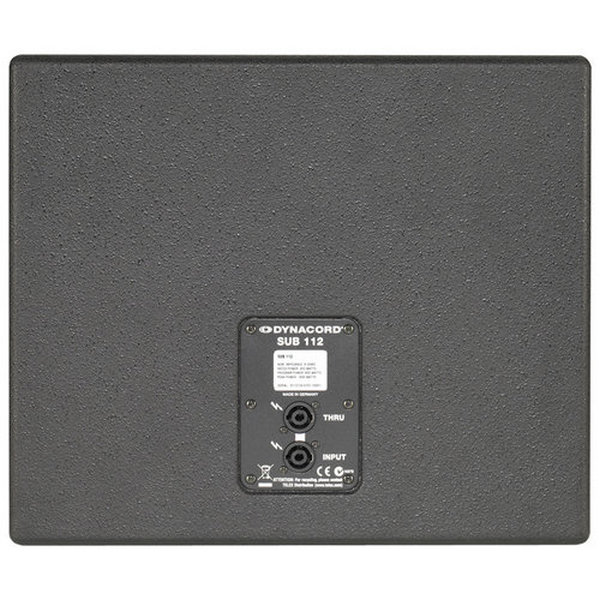 Sub 112 содержит фильтр с глубиной подавления 6 дБ на октаву для подавления ВЧ составляющей сигнала. Сабвуфер может подключаться параллельно с широкополосными кабинетами, например Dynacord D8 для расширения НЧ диапазона системы.