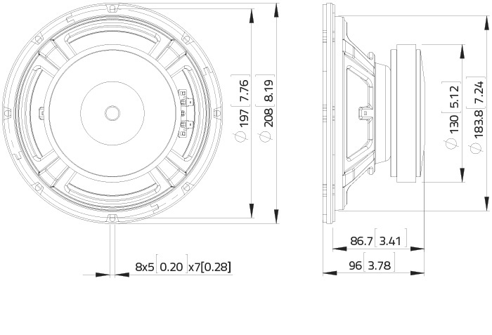 - Номинальное сопротивление: 8 Ом