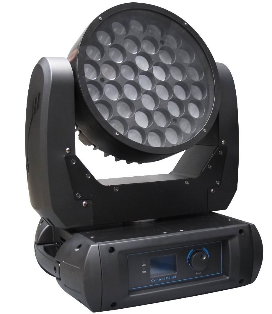 LUX LED 3712 - светодиодная полноповоротная голова на 12 ваттных светодиодах CREE RGBW 4-в-1 с индивидуальным управлением, отличающихся длительным сроком жизни, низким энергопотреблением, высокой яркостью и хорошим эффектом смешивания цвета. Прожектор имеет функции зума от 9° до 50°, цветовых макро и т.п. Высококачественная оптика поззволяет получить освещенность до 35 000 Люкс на 5 метрах.