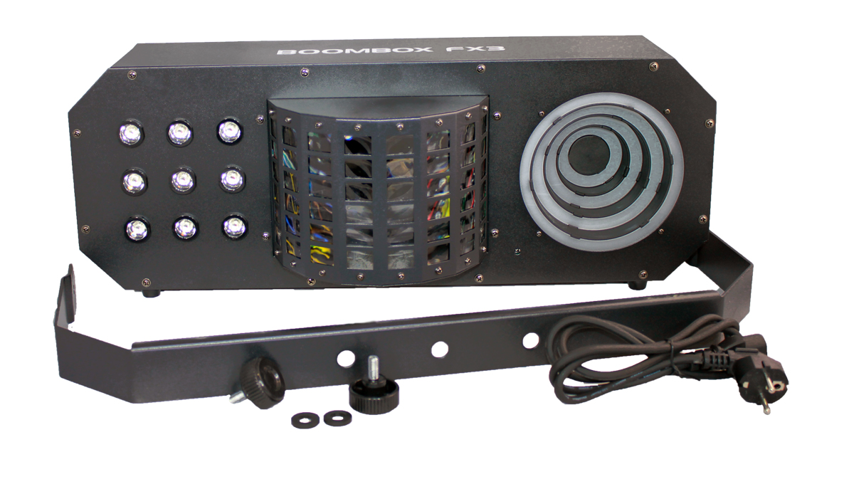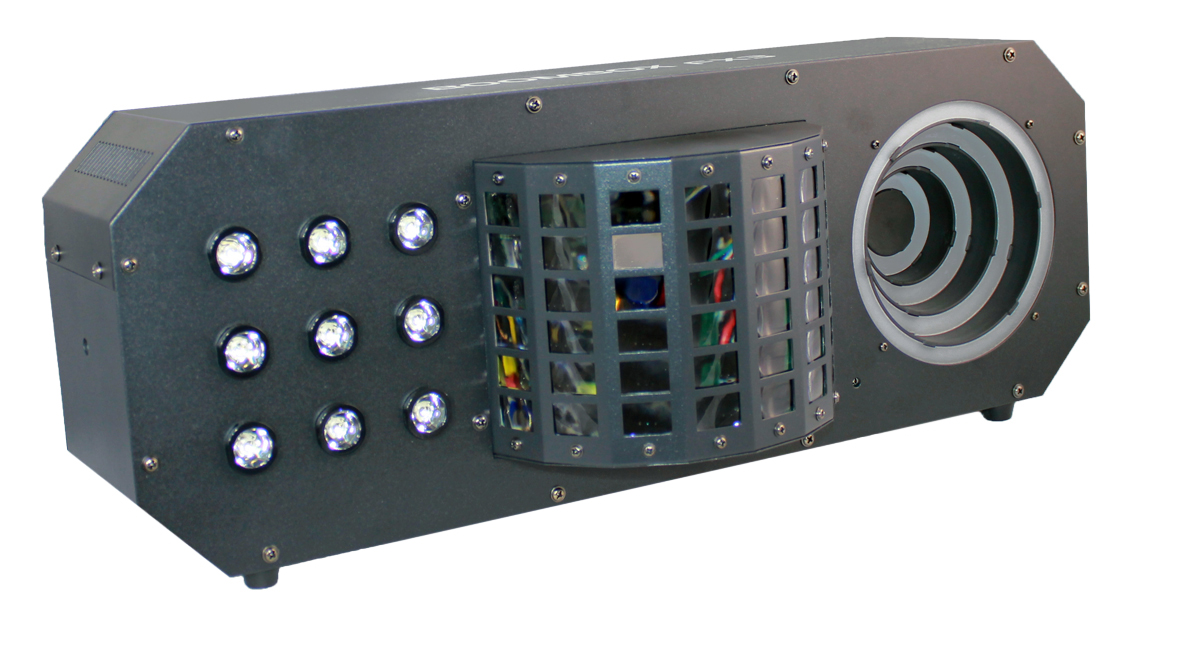 Светодиодный прибор ADJ BOOM BOX FX3 позволяет превратить любую вечеринку или дискотеку в потрясающее световое шоу. Устройство работает в трех режимах: звуковая активация, режим демо-шоу (9 пресетов) и DMX управление.