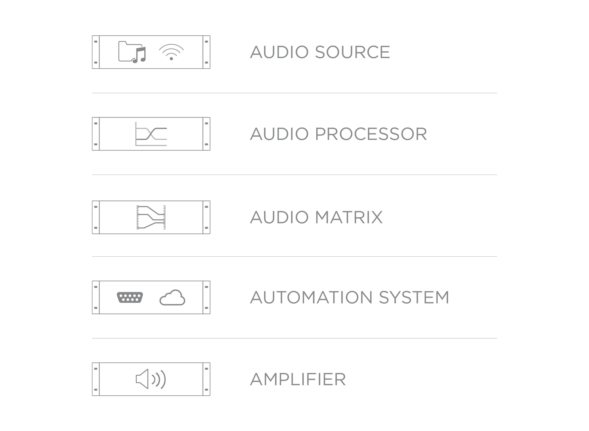 При установке сетевого аудиоинтерфейса ANI44XT Dante™ (дополнительно) музыку из установленного модуля SourceCon™ или подключенный линейный входной сигнал можно передавать по аудиосети Dante™ другим совместимым устройствам или усилителям. Используя Dante™, вы даже можете воспроизводить приоритетные сообщения с почти нулевой задержкой (100 мс) для аудитории.