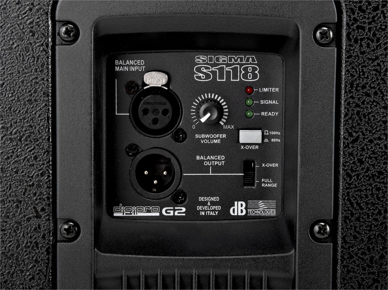Акустична система SIGMA S118, вироблена компанією DB Technologies, має в своєму складі підсилювальний блочок, в комплектацію якого входить такий сучасний цифровий підсилювач, як підсилювач одного з останніх поколінь digipro®G2, який функціонує за допомогою використання імпульсного блоку живлення.