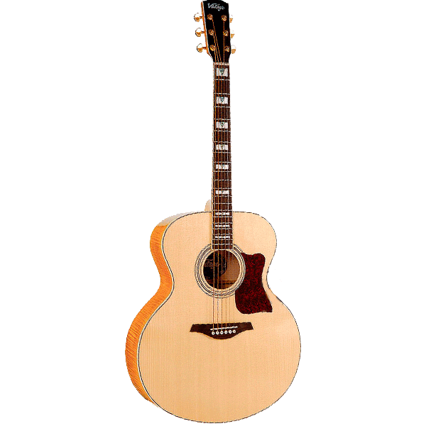Акустична джамбо гітара Vintage V-1700N привертає красою і високою якістю! Музичні інструменти Vintage - це чудовий зовнішній вигляд, чудовий звук і високу якість виготовлення при помірній ціні. За співвідношенням ціни і якості це, мабуть, краща пропозиція для початківців гітаристів. Верхня дека: цільна ялина Нижня дека і обичайки: канадський вогненний клен Гриф: червоне дерево з накладкою з індійського палісандра Бридж: індійський палісандр Механіка: позолочена Grover® 102G. Виріб відповідає всім сучасним стандартам якості і володіє багатьма функціональними достоїнствами. Vintage V-1700N наповнить Вас новими емоціями і приголомшливим різноманітністю звуків! Відчуйте на собі всю повноту світу музики разом з Vintage V-1700N!