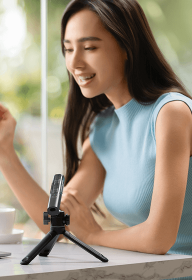 Magic, розроблений для подкастів та зустрічей, у поєднанні з міні-штативом* перетворюється на бездротовий настільний мікрофон. Приймач USB підключається безпосередньо до комп'ютера, забезпечуючи запис звуку на 360°.