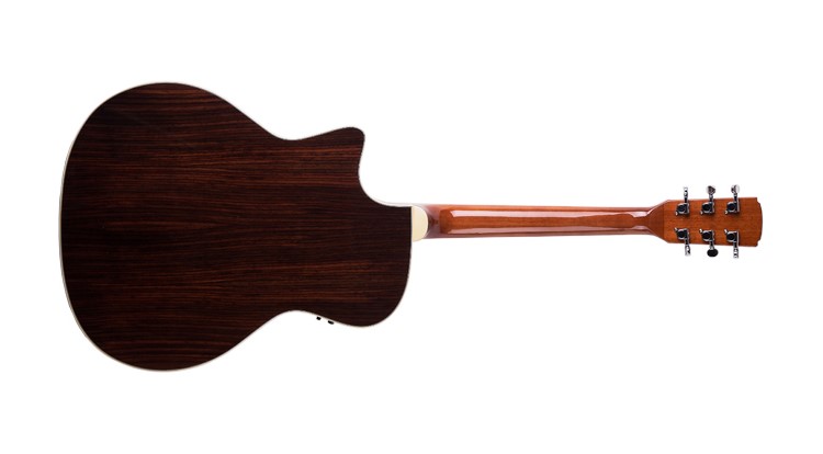 Virginia VAT130SCE - електроакустична модель з вирізом початкового рівня з корпусом традиційних порід: ялина і палісандр, відмінний інструмент для навчання. Вузький гриф з палісандровою накладкою, звучання дуже рівне і збалансоване по частотах. Оздоблення гітари глянцева, прозорий лак підкреслює натуральний тон.