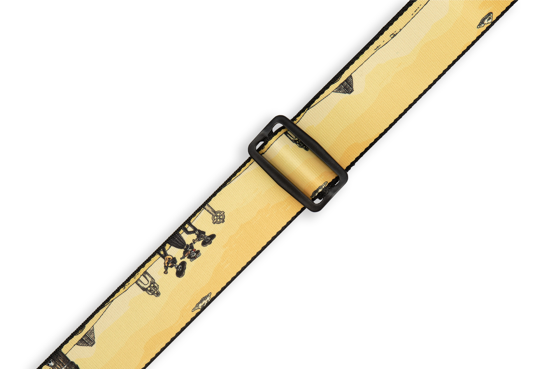 Ремінь серії Levy's Calaca — данина поваги до мексиканського фестивалю «День мертвих», на якому гурт Mariachi та любителі вечірок святкують у пустелі.