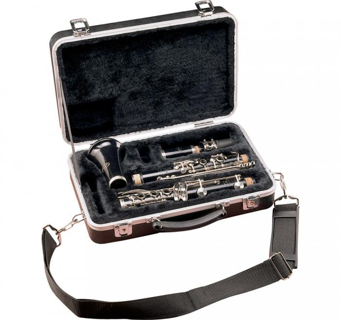 Кейс для кларнета, прямокутний, серія Deluxe, ABS пластик, алюмінієвий каркас, EPS ущільнювач c плістовим ворсом, посилена ручка з наскрізним кріпленням, хромовані замки, кільця для кріплення ременя (опція)