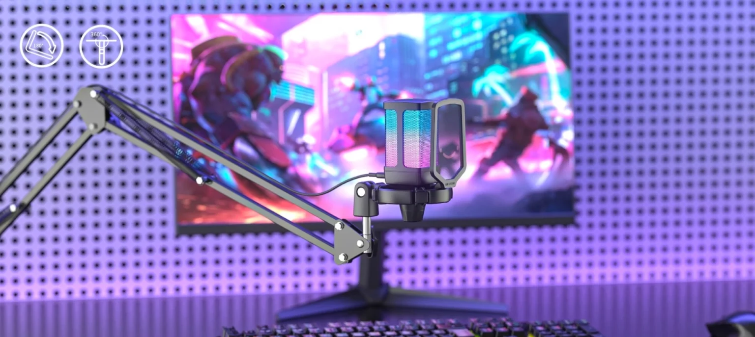 Міцний пантограф у комплекті дозволяє зручно регулювати горизонтальне і вертикальне положення мікрофона, що забезпечує ідеальне розташування та ефективну організацію робочого простору. Регульоване RGB-підсвічування з різними режимами додає стилю та дозволяє створити унікальну атмосферу, підкреслюючи ваш професіоналізм у будь-якому творчому процесі. Мікрофон сумісний з Windows, Mac і PlayStation, а USB порт, розташований за мікрофоном, робить підключення простим і зручним.