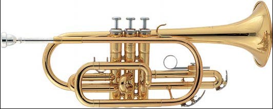 Корнет Сі бемоль, діаметр розтруба 120мм, мундштук 11,6мм, золотий лак