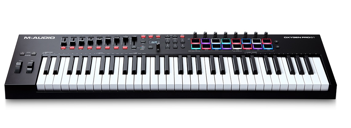 Поєднання 61 кращих в своєму класі, чутливих до швидкості натискання, напівзважених клавіш з послекасанием і призначаються зонами, вбудований арпеджиатор, 16 призначаються педів з RGB підсвічуванням, чутливих до швидкості натискання і повторенням нот, 8 регуляторів і 9 призначаються фейдеров, Oxygen Pro 61 поставляється з усім необхідним, щоб максимально використовувати можливості твоїх віртуальних інструментів і DAW.