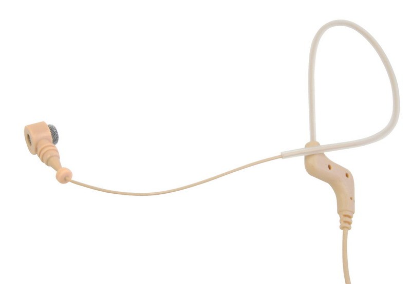 Надлегкий конденсаторний мікрофон-презентер (кардіоідний) з завушним кріпленням. тілесний, кабель діам. 1,5 мм з 4-х конт. роз'ємом; стійкий до впливу поту