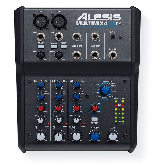 MultiMix 4 USB FX обладнаний вбудованим ним процесором ефектів. Об'ємна реверберація, дилей, фазер та багато інших ефектів – достатньо повернути ручку Effects і ти легко зможеш додати глибини та яскравості звучанню вокалу чи інструменту. Неважливо, чи виступаєш ти на сцені або записуєшся в домашній студії - чудова якість обробки DSP від ??Alesis нікого не залишить байдужим.