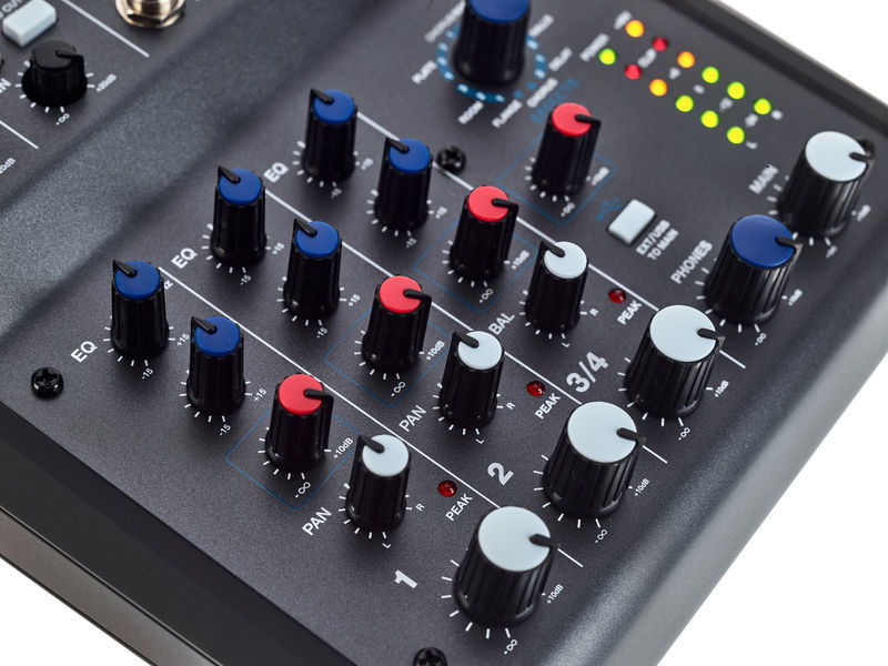 Моно канали 1 і 2 обладнані мікрофонним входом (з фантомним живленням) ), балансним 1/4" входом TRS і 2-смуговим еквалайзером. Крім цього вони мають вбудований 80Гц НЧ фільтр, що усуває небажаний низькочастотний гул. Другий канал також має спеціальний перемикач Guitar що дозволяє безпосередньо підключати в нього гітару або бас.