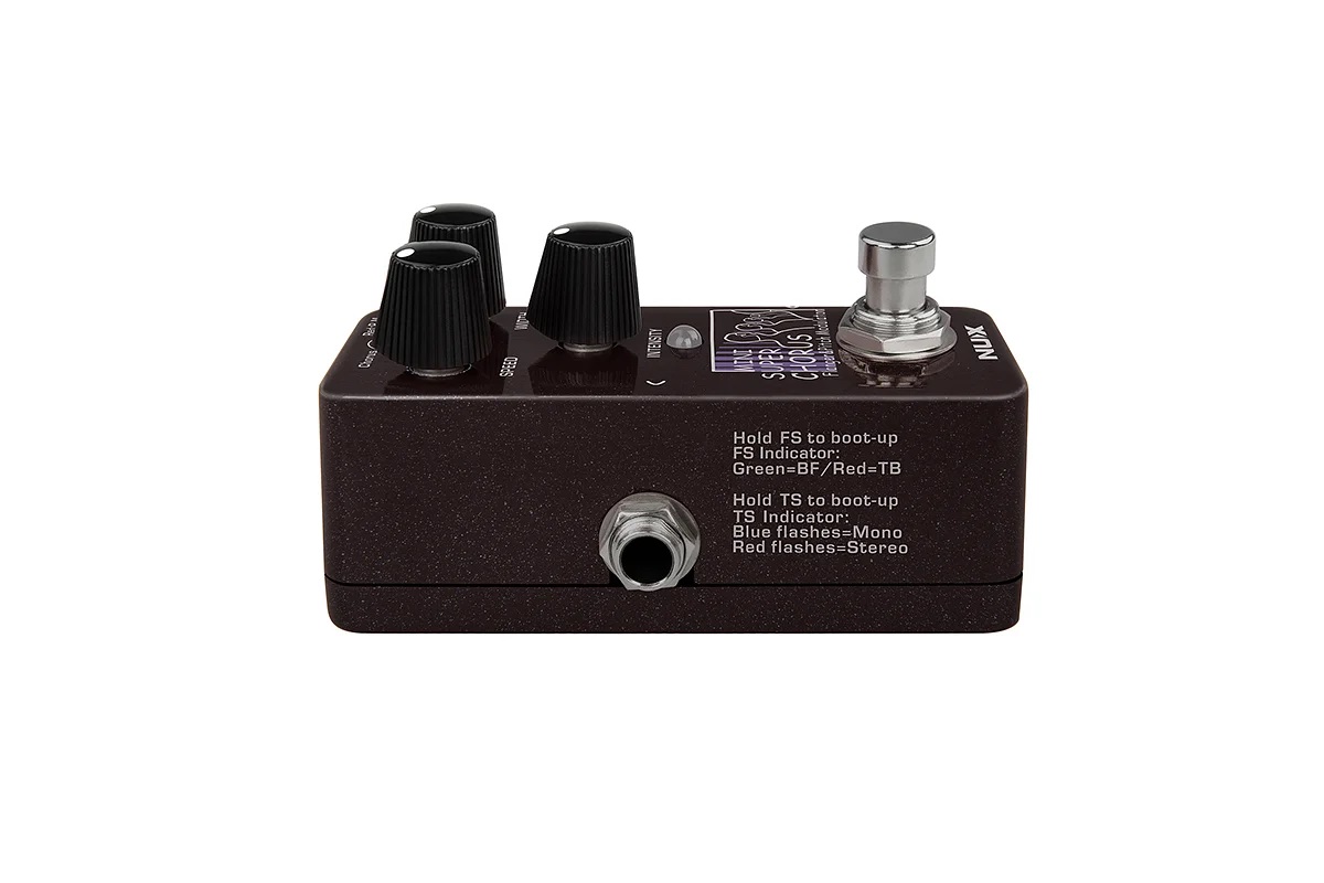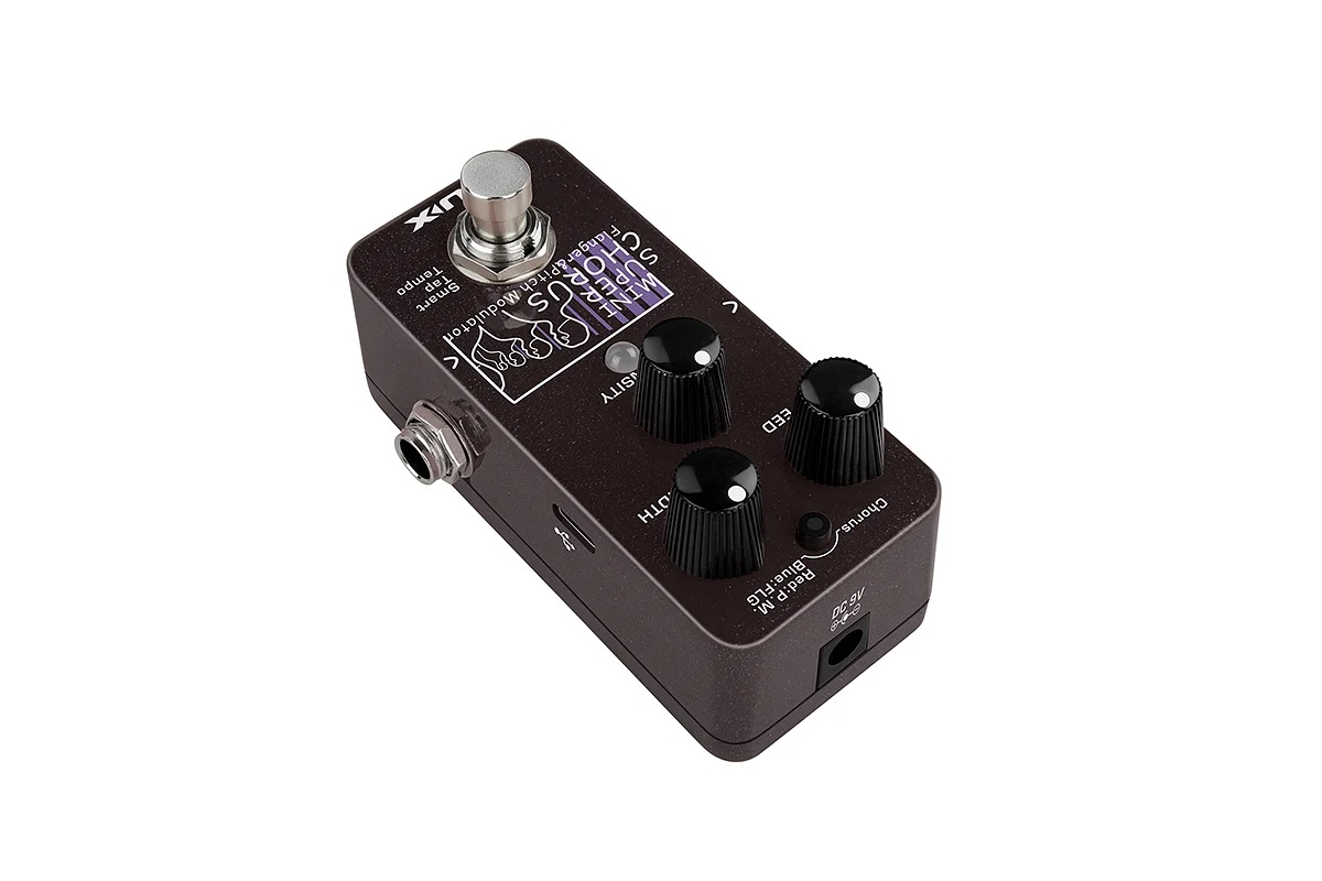 Використовуючи технологію DSP, NUX може запропонувати міні-педаль із контрастним масивом хорових тонів. Крім того, mini SCF пропонує ширший динамічний діапазон, живлення 9 В постійного струму, інтелектуальний темп натискання, що інновує походження та дарує вам більше хороших вібрацій. Приспів: По суті, хор — це генератор висоти, який змішує кілька сигналів затримки. Коли кілька сигналів затримки змішуються з вихідним сигналом, створюється ефект модуляції м’якого та широкого звучання. PM: поєднання хору та вібрато висоти, що створює «легкий» звук хору. FLG: фленджер заснований на тому ж принципі, що й хорус, хоча тут сигнал можна регенерувати (як додавання зворотного зв’язку на затримку), створюючи більш виразний звуковий ефект.