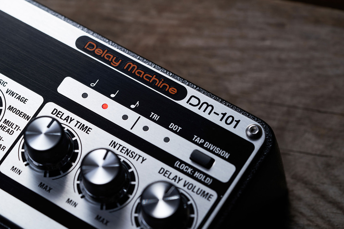 Класичний звук поєднується із сучасною потужністю з Delay Machine DM-101, чудовою аналоговою затримкою. Ця педаль, керована вісьма BBD під управлінням інтелектуального процесора, забезпечує 12 унікальних режимів, роботу в стереофонічному режимі та широкий спектр тональних кольорів, при цьому підтримуючи 100-відсоткову обробку аналогового сигналу.