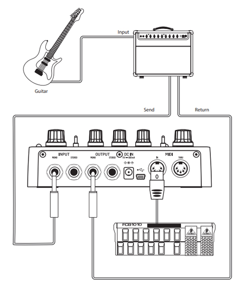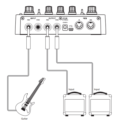 - MIDI вхід для вибору педалбордів із зовнішніх пристроїв