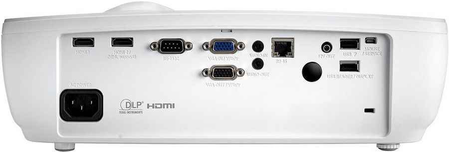 - зв'язок - входи 1 x HDMI 1.4a 3D підтримка, 1 x HDMI 1.4a 3D підтримка + MHL, 1 x VGA (YPbPr / RGB), 1 х Audio 3,5 мм, 1 х USB-зчитувач; виходи 1 x VGA (YPbPr / RGB), 1 х Audio 3,5 мм; управління 1 x USB-A wireless, 1 x RS232, 1 x RJ45, 1 x 12V trigger, 1 x mini USB mouse / service;