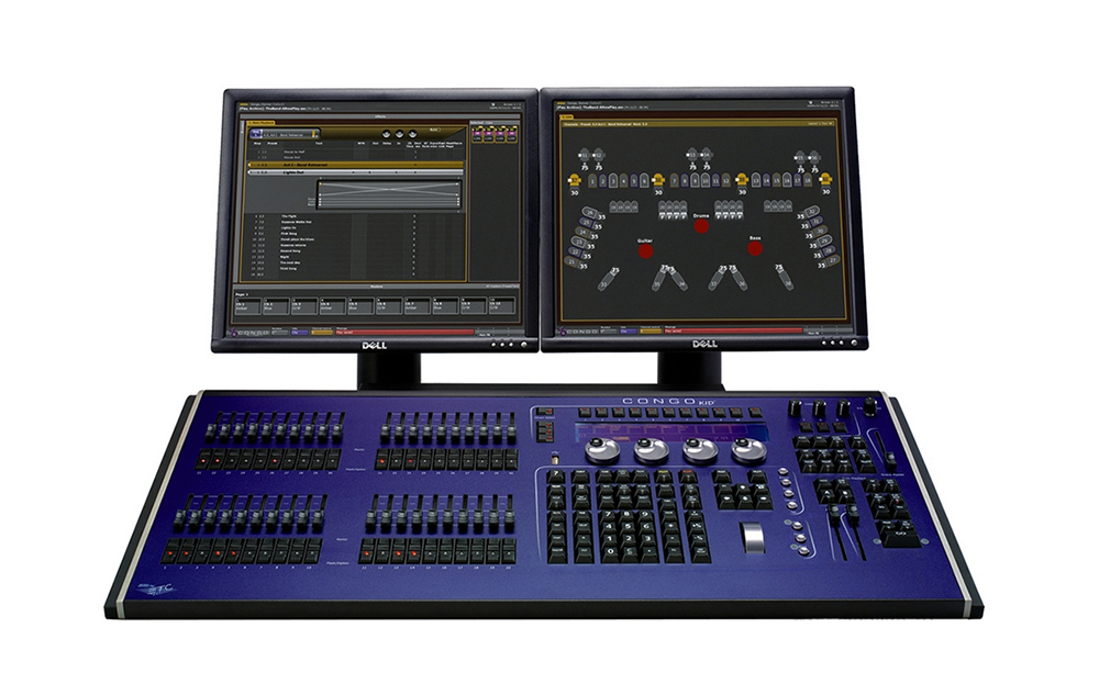 ETC Congo Kid - пульт управління світлом для невеликої сцени або концертного майданчика. Конфігурація 256 керованих або театральних прожекторів плюс можливість розширення до 512 приладів (макс. +1024 канали DMX). Зовнішні монітори з підтримкою сенсорних екранів, російське меню. Робота в мережі Ethernet.