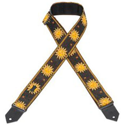LEVY'S M8SUNBLK ремінь гітарний, поліпропіленовий, чорний, з малюнками сонця, шкіряні кінці, Ш 5 см., Д до 137 см.