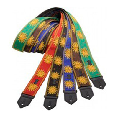 LEVY'S M8SUNRED ремінь гітарний, поліпропіленовий, червоний, з малюнками сонця, шкіряні кінці, Ш 5 см., Д до 137 см.