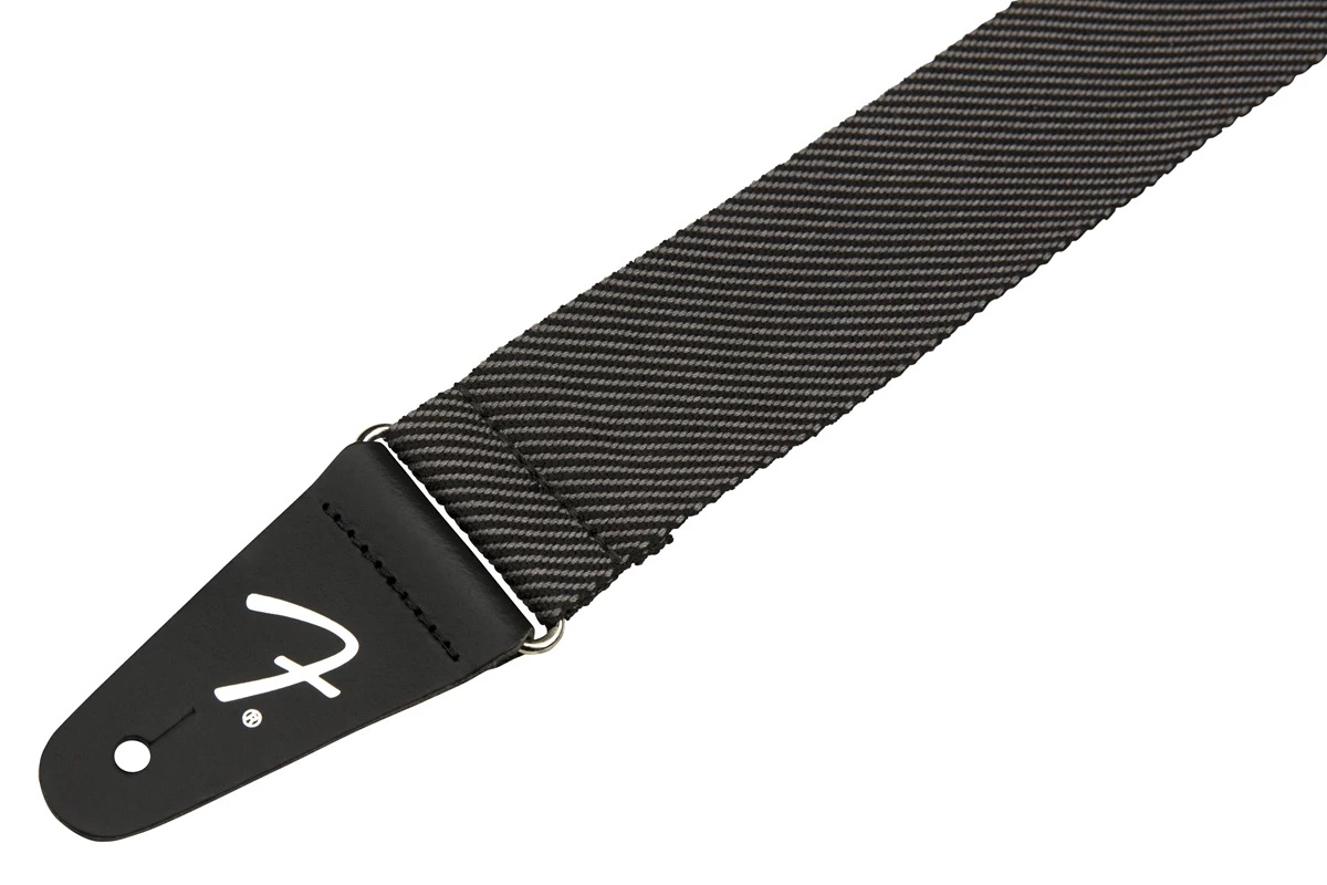 Fender Strap 2" Modern Tweed Gray and Black – гітарний твідовий ремінь, ширина: 50.8 мм, довжина: 86.36-149.86 см, матеріал – поліестер, шкіряні кінці "F", колір – сірий з чорним.