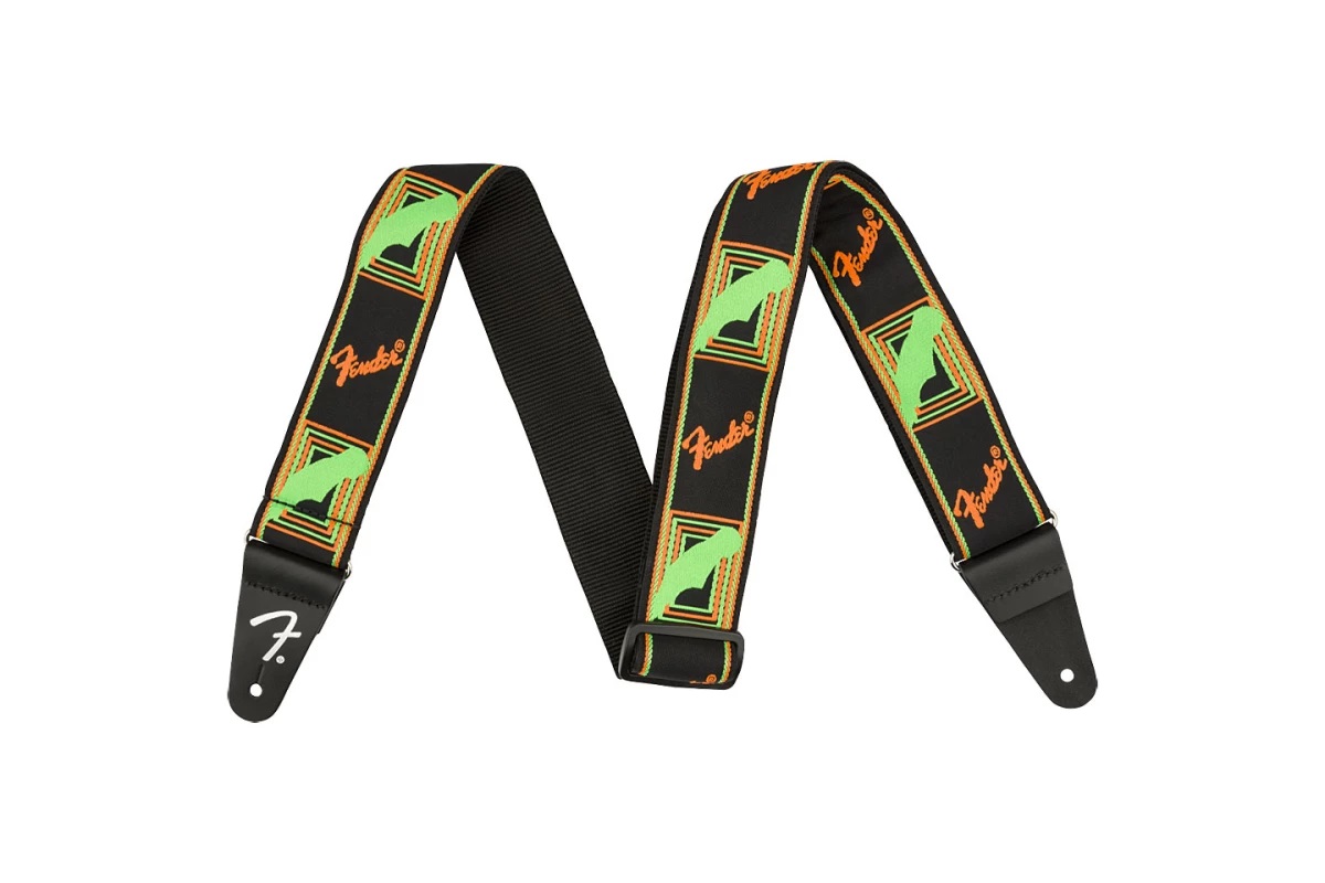 FENDER STRAP NEON MONOGRAMMED GREEN ORANGE, представлений в яскравому неоновому кольорі і виготовлений з міцного поліестеру, забезпечує максимальний комфорт і неповторний стиль для всіх гітаристів.