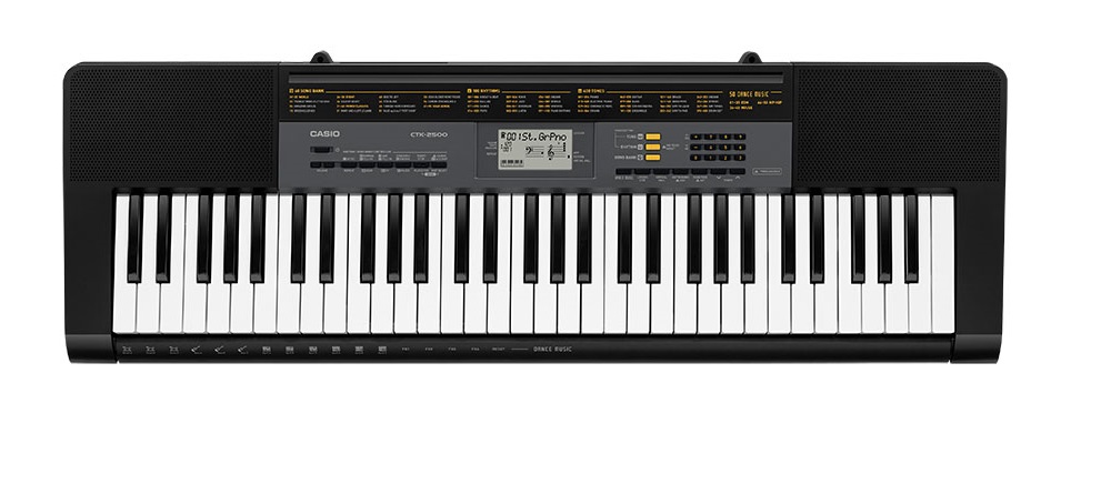 CASIO CTK-2500 - синтезатор, з 61 повнорозмірною клавішею, автоакомпанементом і зручною системою навчання. У синтезатора CASIO CTK-2500 Ви знайдете 400 тембрів, за звучання яких відповідає процесор AHL, 10 ефектів для обробки тембрів, 150 стилів автоакомпанементу + 50 танцювальних ритмів (яких не було в попереднику CTK -2400), поліфонія в 48 нот, можливість семпліювання з використанням стандартного аудіо-входу, 5 кнопок Voice Pad і можливість налаштувати 150 команд в один дотик.