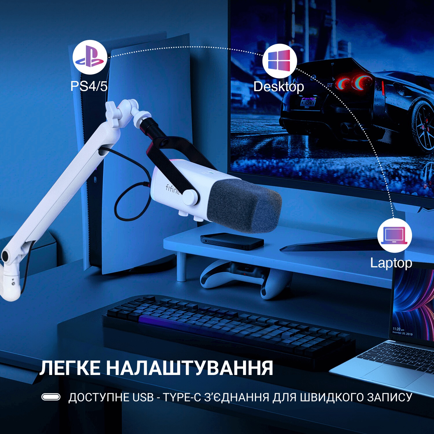 Студійний динамічний XLR/USB мікрофон з пантографом FIFINE TAM8W (157245)