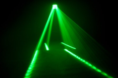 Light Studio PL-P115 - світлодіодний дискотечний світловий прилад, виробляє обертаються і перехрещуються промені червоного, синього і зеленого кольорів.
