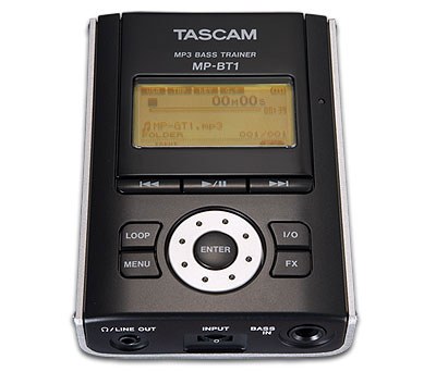 TASCAM MP-BT1 - перший MP3-плеєр, створений для музикантів. Створений на основі зазначеного численними нагородами CD-BT1mkII, даний мобільний басовий трейнер оснащений об'ємом пам'яті, достатнім для зберігання до 240 композицій. Басові партії можна уповільнювати, зацикливать і навіть заглушати, все для того, щоб допомогти Вам розучувати нові рифи. Відтворення MP3 за допомогою функції Variable Speed ??Audition, яка уповільнює швидкість не змінюючи висоти тону. Секції можна бесшовно зацикливать при навчанні складних технік. Також можна підвищувати або знижувати висоту тону композицій для підстроювання під звучання Вашого баса, т. О. Вам не доведеться перенастроюватися під кожну пісню.